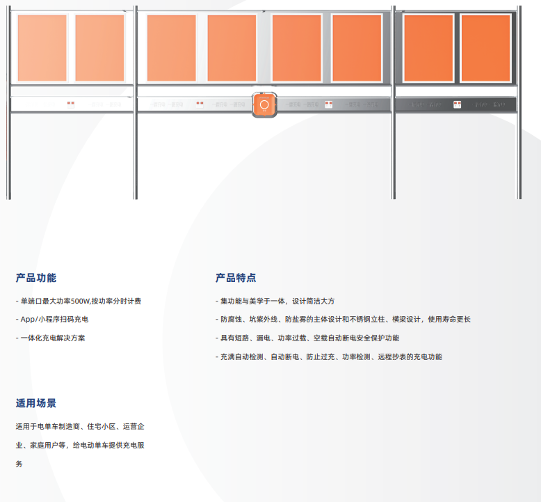 Meta B5CN 是一款电瓶车充电桩,可应用于两轮电瓶车、三轮电动车等车辆集中 安全充电的场景;产品体积小不占空间,安装施工便捷,高效运维,可广泛用于 充电诉求集中的各种场景。